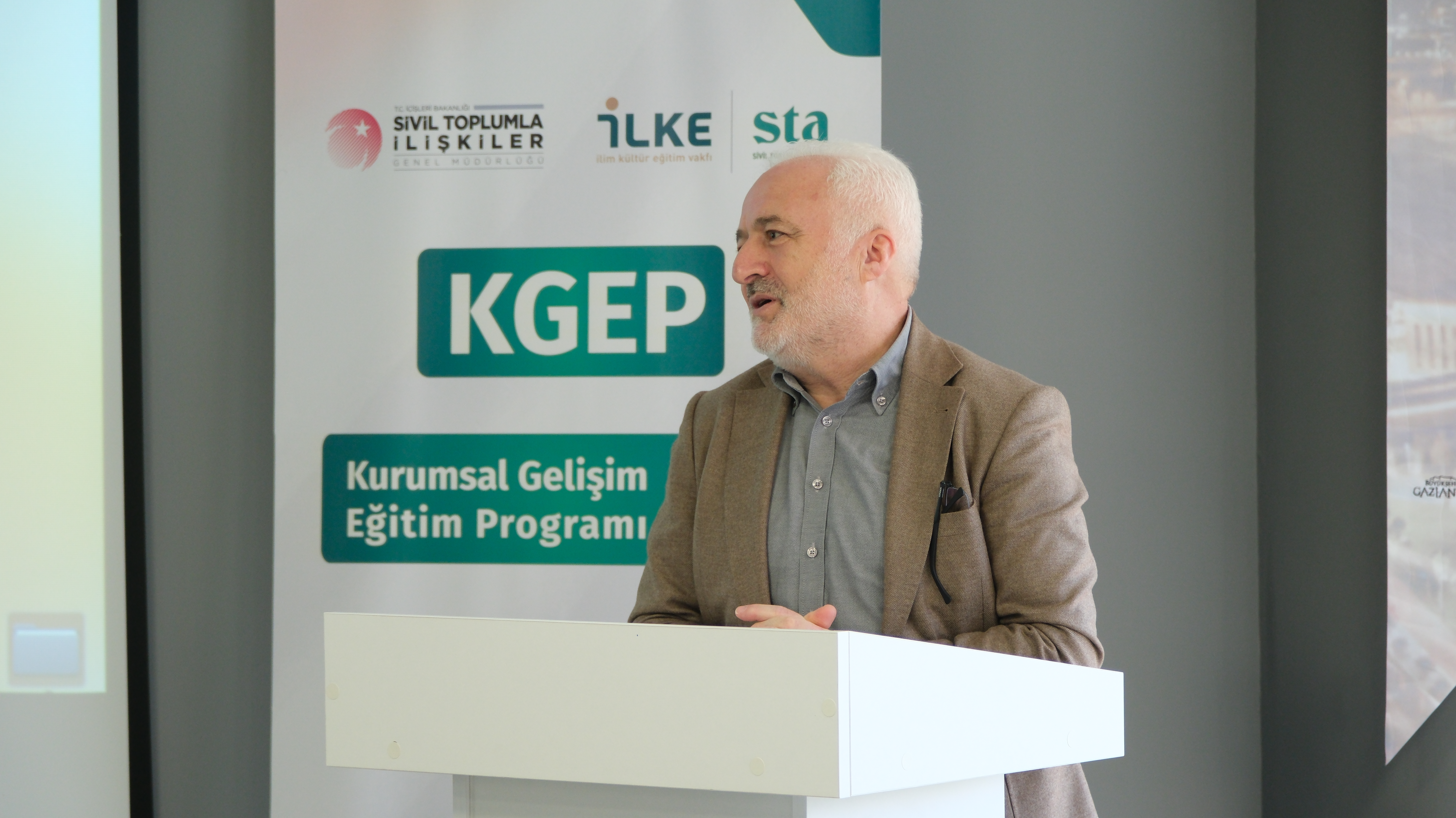 İLKE Vakfı Mütevelli Heyet Başkanı Prof. Dr. Nihat Erdoğmuş açılış konuşmasında KGEP’in kurgulanma sürecine değinerek, “Bu programı tasarlarken en çok duyduğumuz soru ‘Bu eğitime nasıl zaman ayıracağız?’ oldu. Biz ise bütünlüklü bir yapıda ısrarcıydık; çünkü sivil toplum yönetiminin böyle bir eğitime ihtiyaç duyduğuna inanıyoruz.” ifadelerini kullandı. Konuşmasını ev sahibi kurum olan İstasyon Gaziantep’e teşekkürlerini ileterek tamamladı. Ardından İstasyon Gaziantep İcra Direktörü Didem Arslan, kurumun yürüttüğü çalışmalar hakkında bir sunum yaptı.