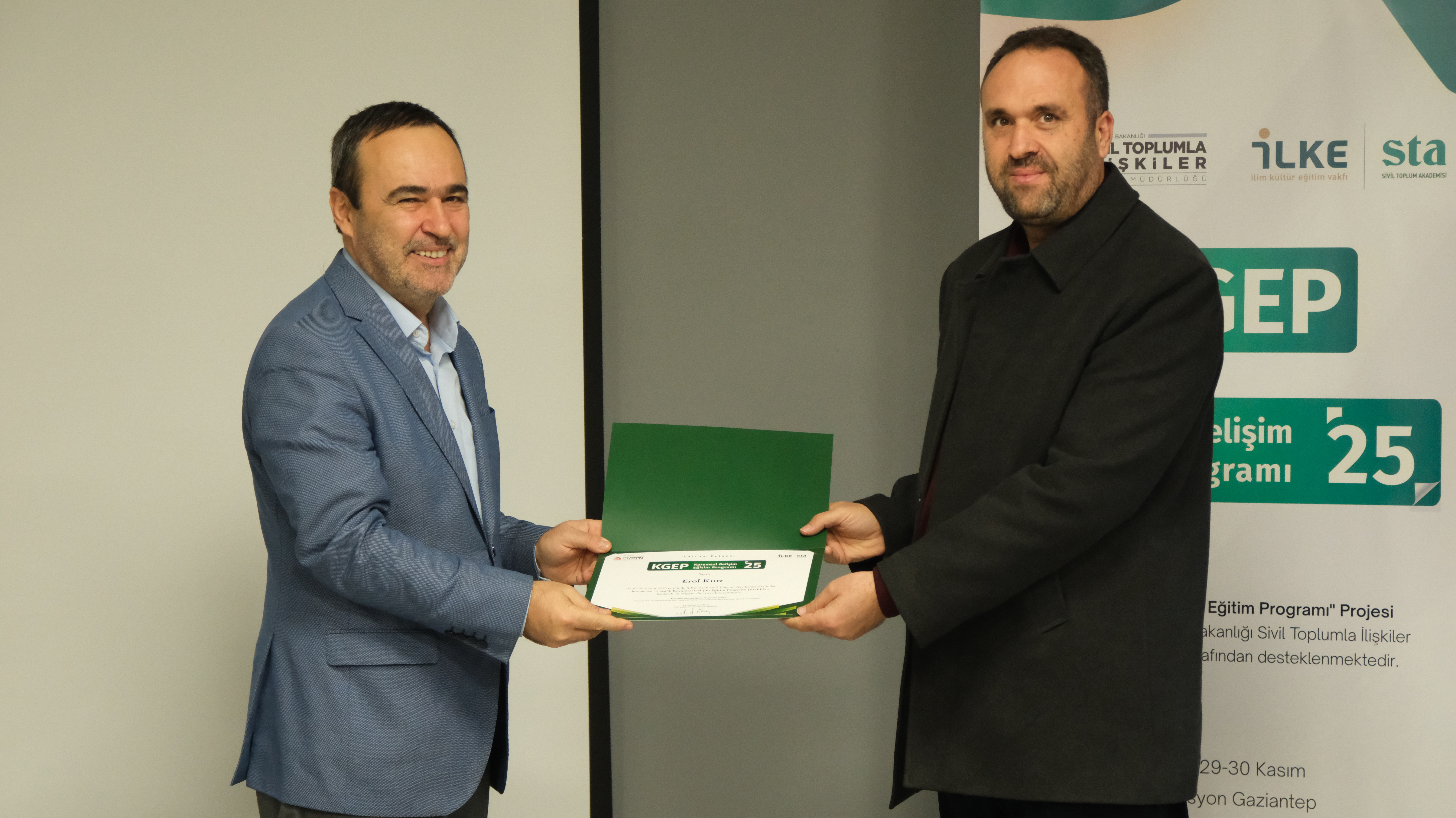 Programın sonunda, KGEP’in yalnızca bilgi aktarmaya odaklanan bir eğitim olmanın ötesine geçtiği; STK’lar arasında işbirliğini güçlendiren, kurumlar arası iletişimi artıran ve katılımcılar arasında kalıcı bağlar kurulmasına imkân sağlayan bir buluşma zemini sunduğu vurgulandı. Eğitimi tamamlayan katılımcılara belgeleri takdim edildi ve program toplu fotoğraf çekimiyle sona erdi.