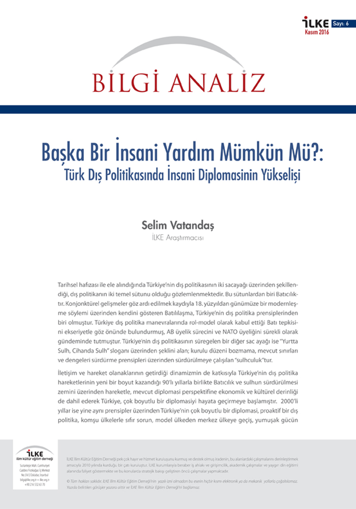 İLKE Derneği yayımladığı bu Bilgi Analiz'inde; Türkiye'nin, insanlığın vicdanının her şeyin ötesinde olduğunu tarihe kayıt düşen anlatısını “Başka bir insani...